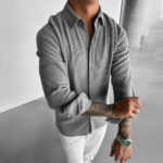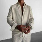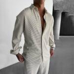 Get ready to stand out in style with the Chic Ribbed Stripes Shirt. The textured vertical stripes add a unique dimension to this shirt, making it perfect for any occasion. With its playful and quirky design, you’re sure to make a statement wherever you go. Upgrade your wardrobe today!