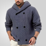 Keep warm with the Double-Breasted Hooded Sweater. With its unique, double-breasted style, this sweater will keep you cozy and stylish. Perfect for cold weather and making a statement. (Plus, it has a hood for that extra bit of warmth!)